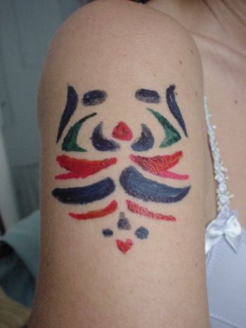 Auf Wunsch auch mit Hennapaste. Und wenn es nur ein kurzer Partygag sein soll, mit Theater-Nass-Schminke!